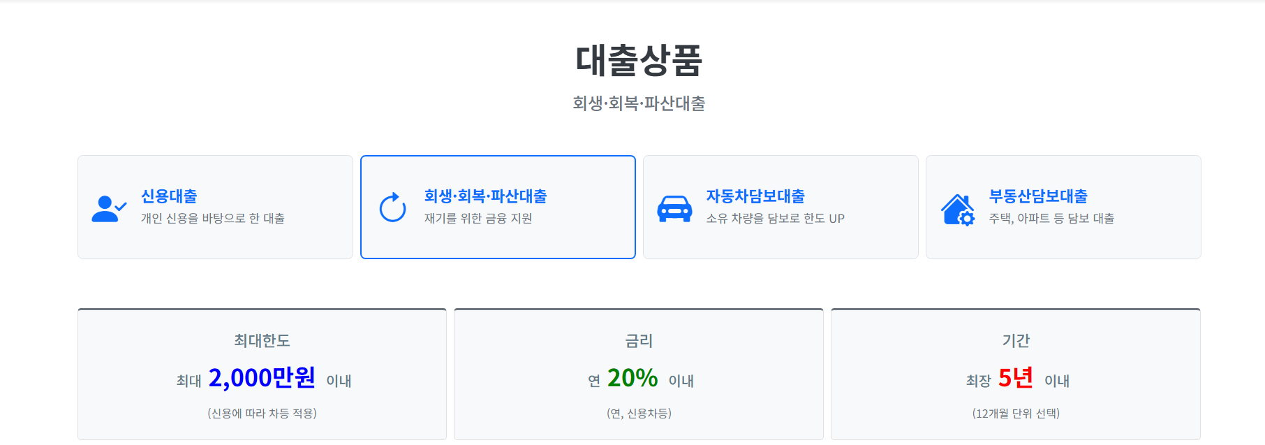 재정적 어려움에 놓인 분들의 성공적인 재기를 돕기 위한 대출 서비스입니다.