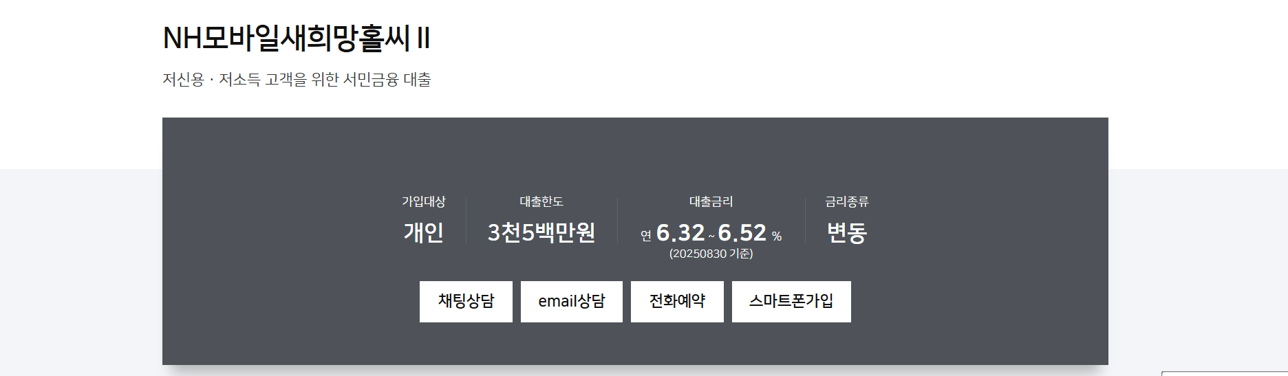 NH농협은행의 새희망홀씨2 대출은 저신용·저소득 고객을 위한 모바일 전용 서민금융 신용대출 상품입니다.