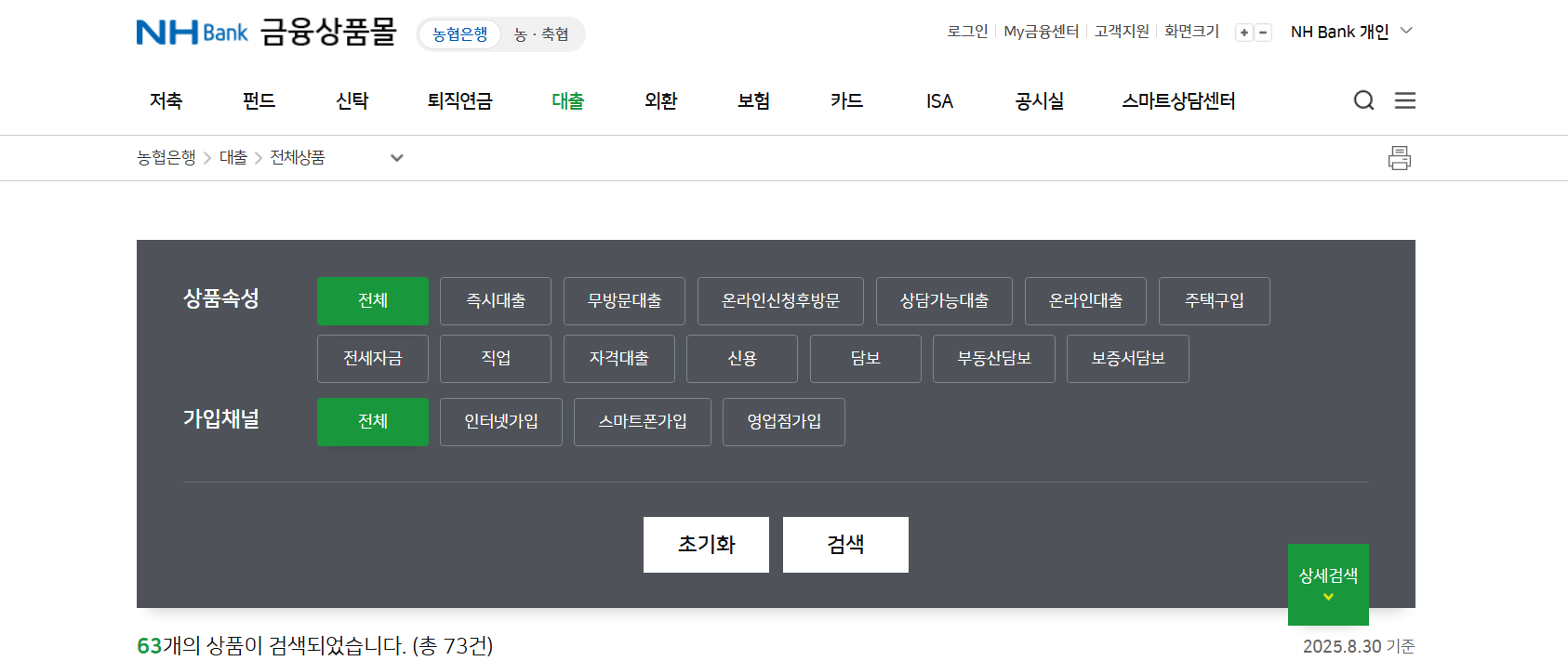 - ‘금융상품몰’ → ‘농협은행’ → ‘대출’ → ‘NH모바일 새희망홀씨Ⅱ’ → 신청 진행 .