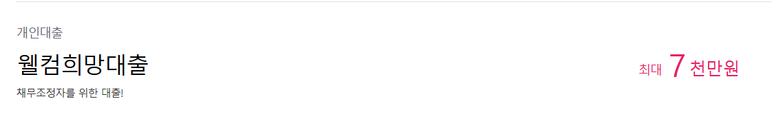 - "개인회생 중이라 대출이 어려울 줄 알았는데, 웰컴희망대출 덕분에 생활에 큰 도움이 되었습니다."