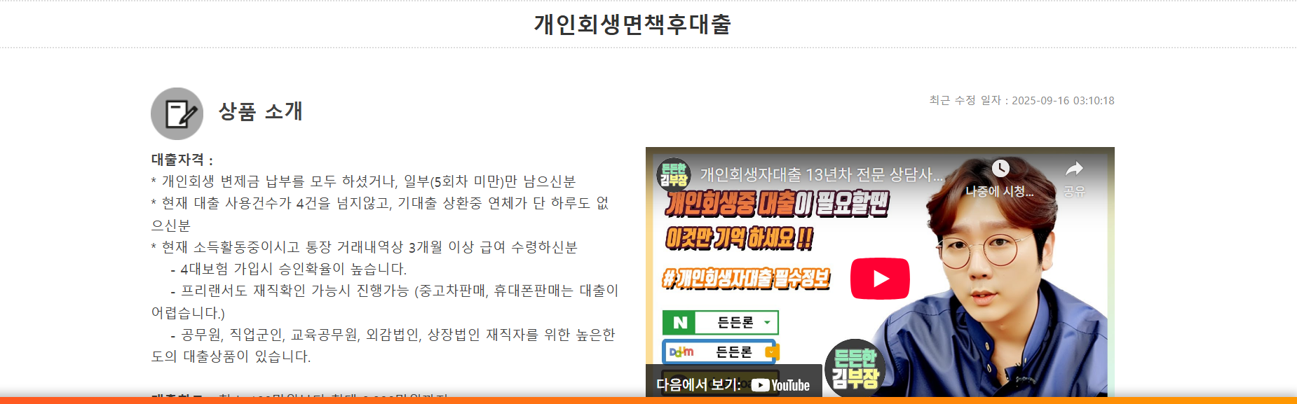 9. 개인회생대출 든든론 대부 개인회생 면책자 대출 후기