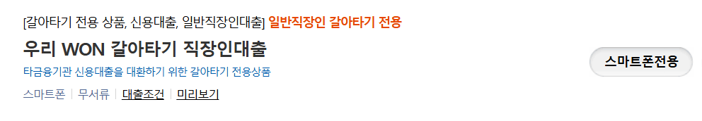 우리은행 갈아타기 대환대출 직장인 대출 조건 금리 한도 신청방법