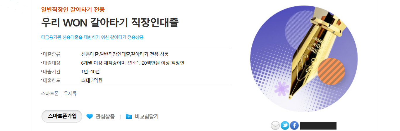 - "우리은행 WON 갈아타기 직장인대출을 이용하여 타 은행의 고금리 대출을 대환하였습니다. 신청 과정이 간편하고, 금리가 낮아져 이자 부담이 크게 줄었습니다."