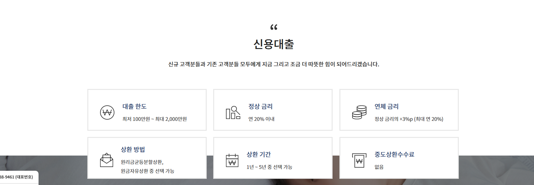 이 상품은 오랜 업력을 가진 전문 대부업체가 운영하며, 고객의 상환 능력과 신용 상태를 기반으로 합리적인 대출 심사가 이뤄집니다. 또한 중도상환수수료가 없고, 상환 기간이나 방식 선택이 가능해 고객의 상황에 맞춘 맞춤형 금융 지원이 가능합니다.
