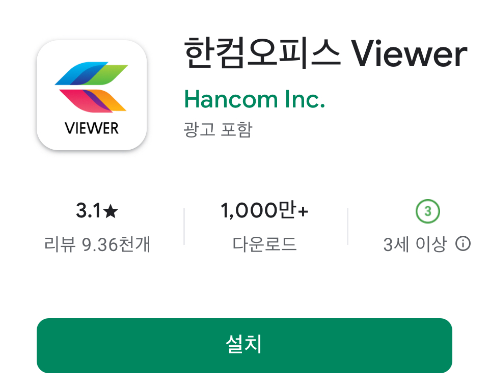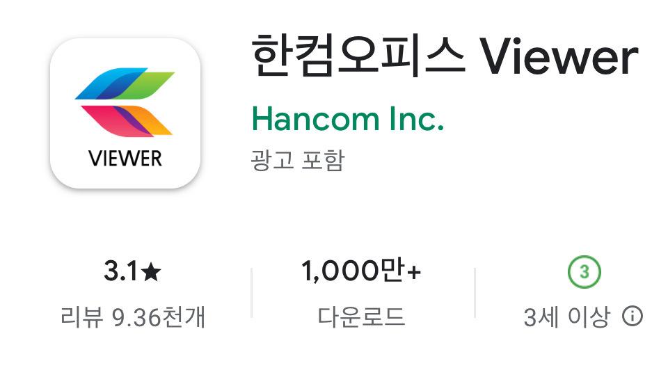 한컴오피스 뷰어는 한글과컴퓨터 공식 앱으로, 별도의 유료 결제 없이 무료로 이용할 수 있습니다.