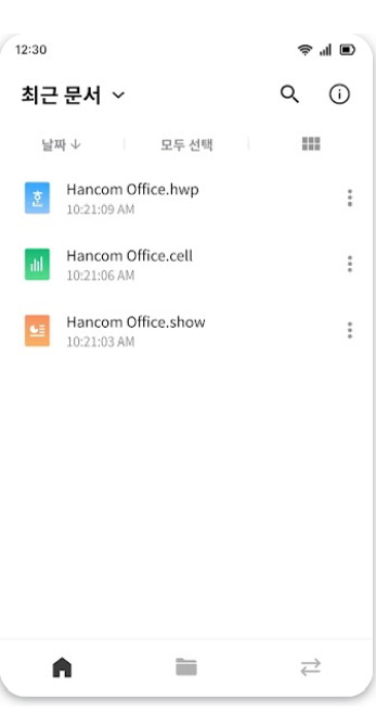 4. 설치 후 앱을 실행하면, 스마트폰에 저장된 문서 목록이 자동으로 인식되어 표시됩니다.