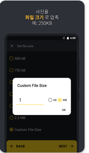 원하는 용량이나 해상도를 직접 입력하면 앱이 자동으로 압축을 진행합니다.