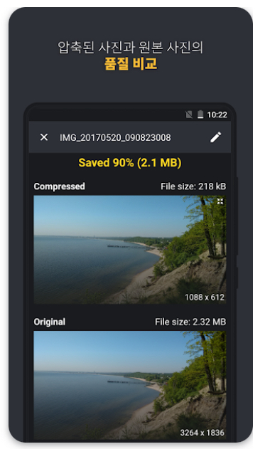 완료 후, 원본과 압축된 이미지를 비교해 품질을 확인할 수 있습니다.