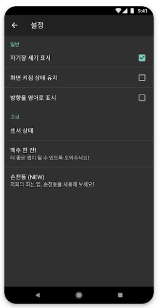 • 자기장 세기(Magnetic Strength) 표시: 주변 자기장 상태 확인