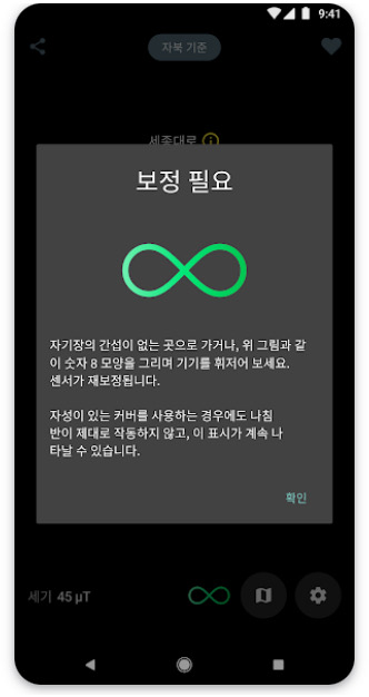 앱 사용 중 자기장 오류가 발생하면 간단한 센서 교정으로 정확도를 높일 수 있습니다.