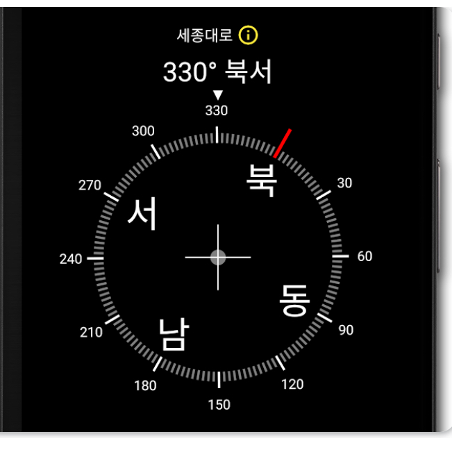 2. 화면 중앙의 나침반을 통해 방향 확인