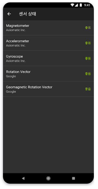 • 센서 상태 확인: 나침반 센서 상태 실시간 확인