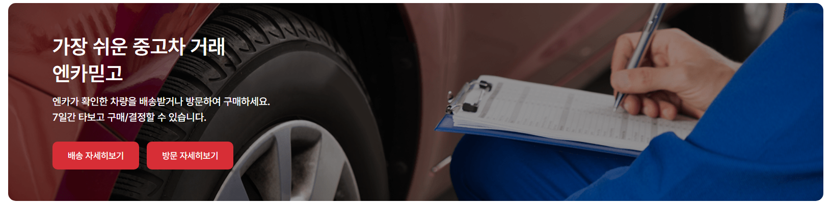 - “SK엔카 홈서비스로 올라오는 차량들은 상태가 A급이라 믿음이 갔습니다. 7일 이내 환불 가능하다는 점이 가장 큰 매력이었어요. 차량 인수 후 바로 상태 확인했고, 엔진·브레이크 등 정비이력도 양호했고 구매 후 만족도가 높았습니다.”