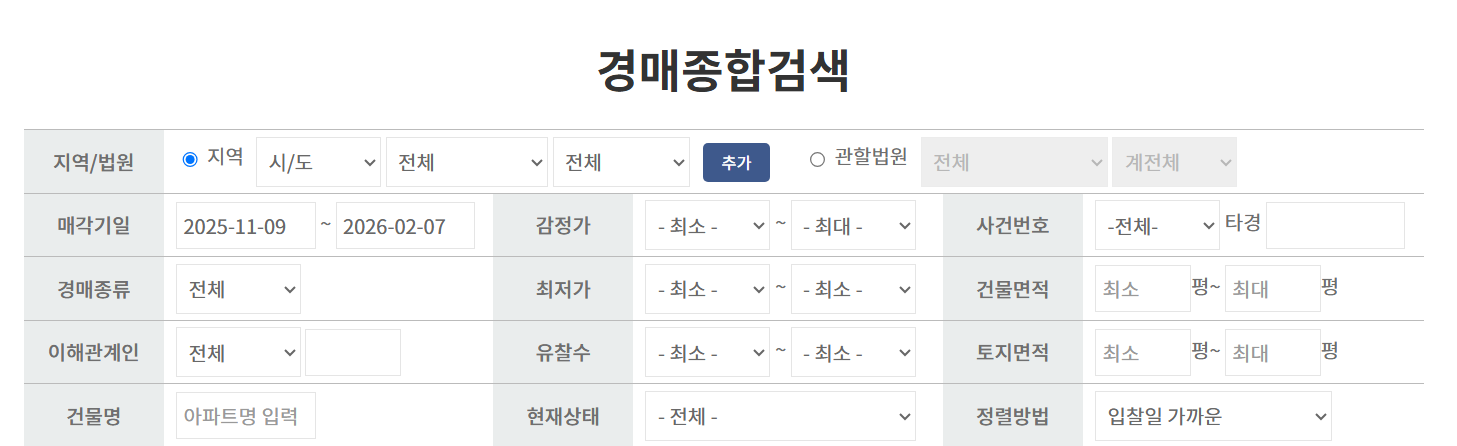 - 무료 경매정보 열람: 전국 법원 물건 검색 가능