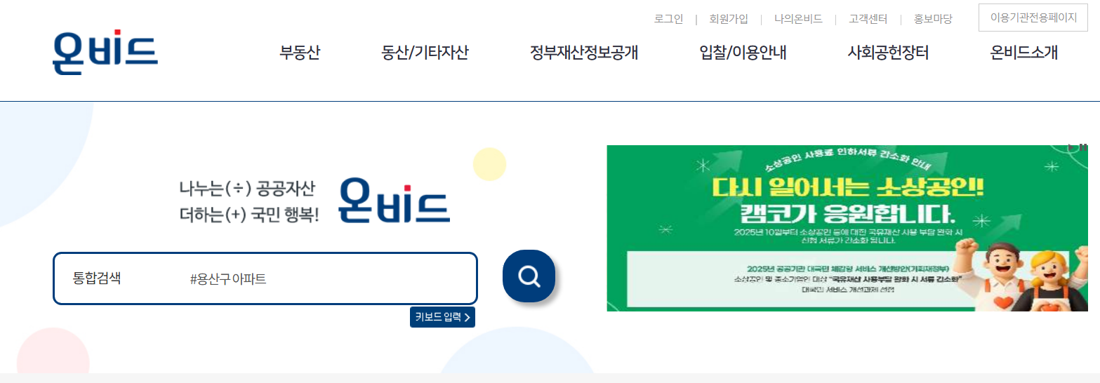 온비드는 한국자산관리공사(KAMCO)가 운영하는 공매 전용 공식 사이트입니다.