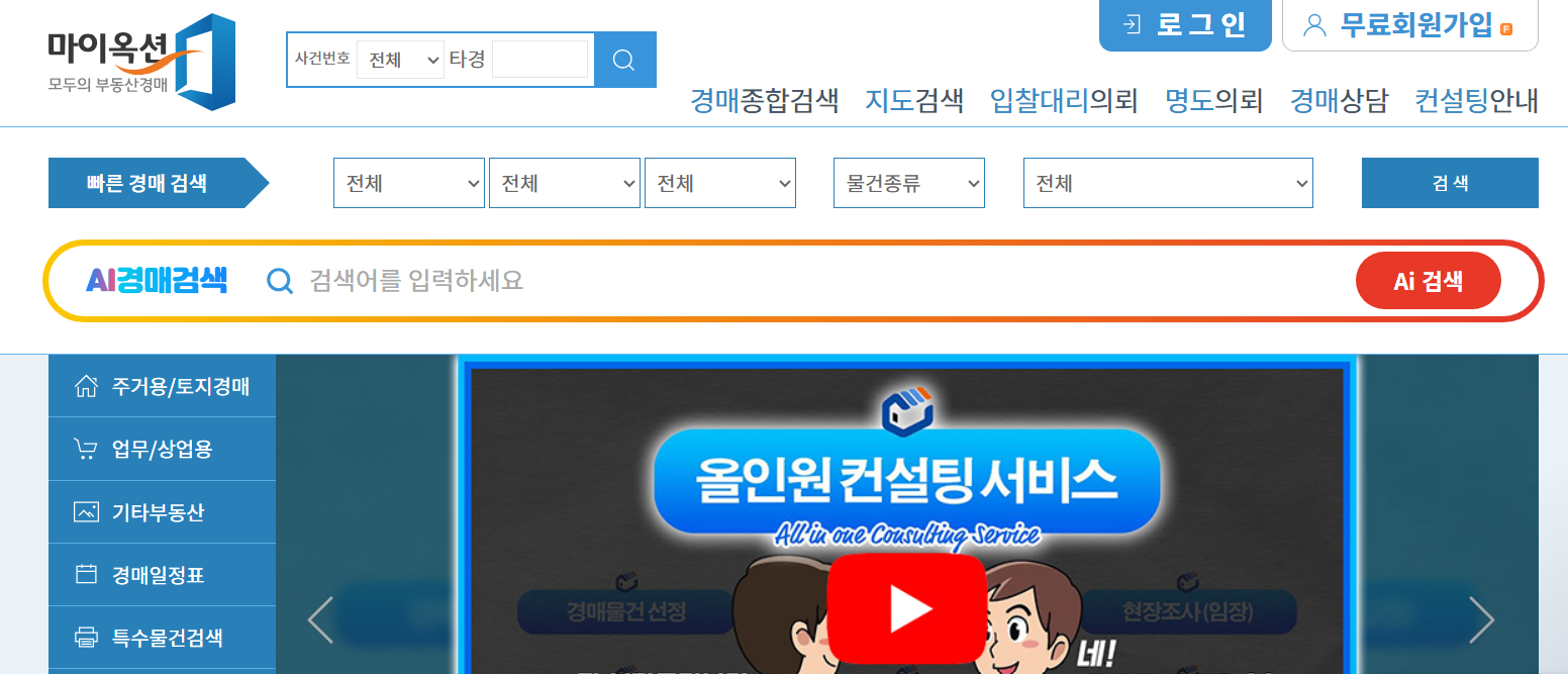 마이옥션은 무료로 전국 경매물건 정보를 제공하는 플랫폼입니다.