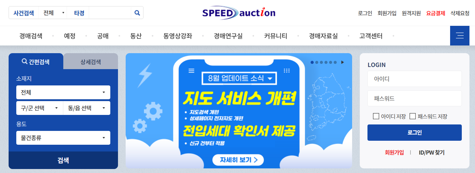 스피드옥션은 빠른 경매물건 업데이트와 간편한 검색 기능으로 유명한 사이트입니다.